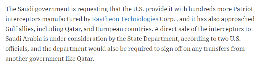 السعودية في "وضع خطير" وتطلب صواريخ بشكل عاجل من أمريكا وقطر