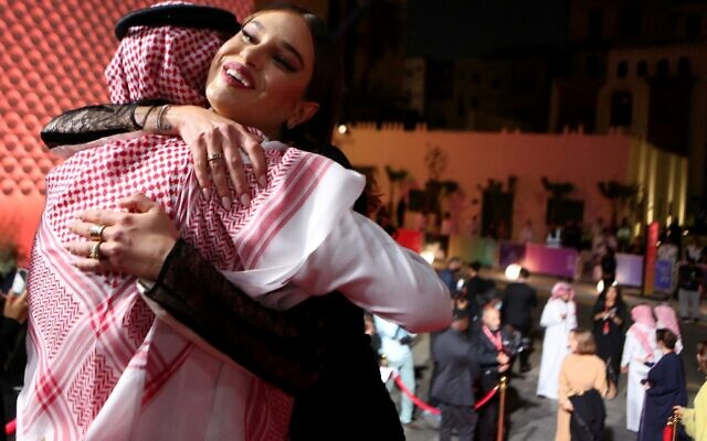 الممثلة الأمريكية ميردث ميكلسون تحتضن محمد التركي رئيس المهرجان